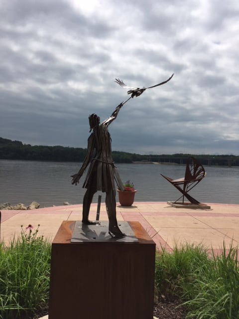 If you go in the summer, the Mississippi River Walk includes a bonus. Art. Since 2006, artists have displayed sculptures along the walk and it’s referred to as Art on the River. They are for sell. Ten were installed in 2018, but by the time I walked only eight remained. I assumed that meant the other two sold.