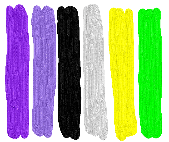 Swaths of color: blue violet, purple, black, grey, yellow. lime.